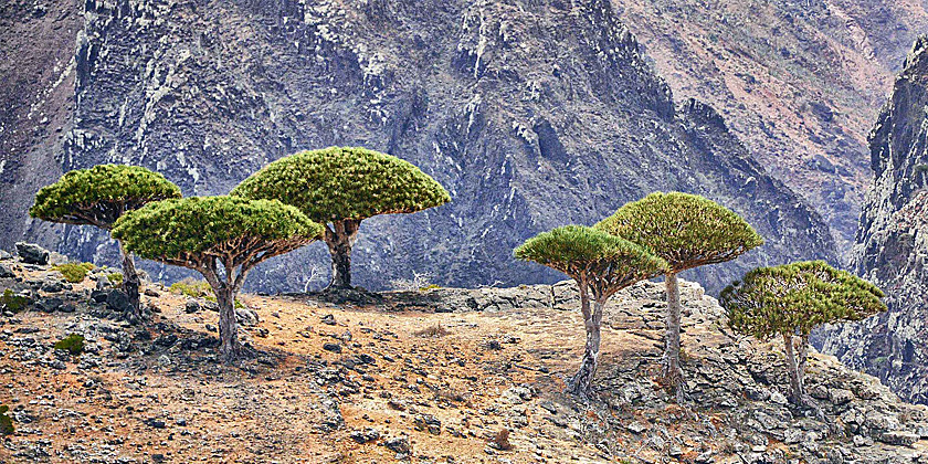 これらの絶滅危惧種の樹木は、数百万年前の地球の様子を垣間見ることができます。実際、ソコトラ島のドラゴン ブラッド ツリーの歴史は 5,000 万年以上前に遡ります。